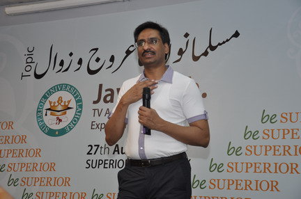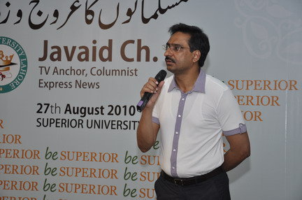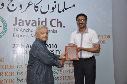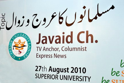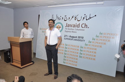 The Seminar was arranged by Superior University, Lahore on Sunday August 29, 2o1o at 9:30 am. The topic was “Musalmanoun ka Arooj o Zawaal” . A lot of people joined there and participate in discussion. Here are few pictures of the event and video will be updated soon.